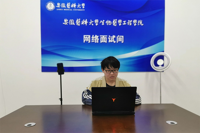此外,各学院也第一时间腾出办公室、党员活动室、会议室等场所作为“线上直播间”,安排专人值班,并针对学生不同的面试日程需求建立了预约制度。有的学院还贴心地准备了专业的补光灯、手机支架等设备,以求为学生提供更加温馨、舒适的面试环境。