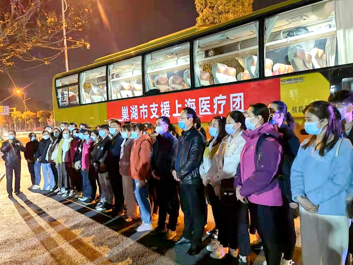 4月3日,附属巢湖医院积极响应上级单位要求,紧急选派4名检验人员和15名护理人员前往上海,支援该地核酸检测工作。4日晚上,15名参加核酸采样的护理人员完成任务,平安归来。4名检验人员仍在上海继续战斗。