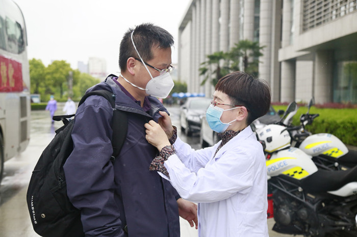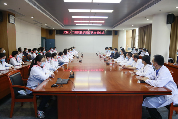 该院党委书记周典希望队员们发扬好伟大抗疫精神,大力弘扬安医精神,服从安徽方舱医院领导的统一指挥,努力做好患者救治工作,平安归来。