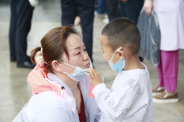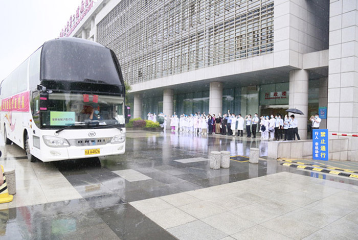 4月25日中午12时30分,来自我校第二附属医院临床、行政和后勤保障部门的39名医疗队员,按照省卫健委要求,组成了医院第三批援沪抗疫医疗队,在大雨中乘坐大巴火速奔赴上海,将参与上海花博园方舱医院E舱的院区运行管理和患者救治等工作。校党委书记顾家山、校长曹云霞出席出征仪式并在雨中为队员们送行。