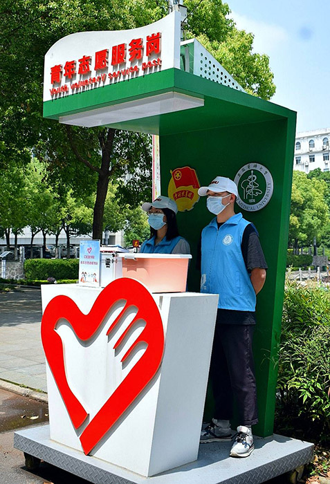 积极开展各类志愿服务。举办“东南学堂·疫情防控”公共卫生专项志愿者技能培训班,招募830名疫情防控储备青年志愿者,组织线上志愿服务专题学习;开展疫情防控志愿者专项应急处置演练,邀请区疾控中心专家、青年公益服务活动专家进行在线指导;每周组织966人次在青年志愿服务岗亭、教学楼门口、校园围栏、食堂、核酸检测现场等区域,参与校园疫情防控志愿服务。在全校有预防医学专业背景的学院,组建125人参与疫情防控电话流调工作的青年突击队,陆续派出40名队员支援蜀山区疾控中心工作。开展与我校各附属医院援沪医疗队子女“手拉手”培训辅导专项志愿服务,为医护人员子女提供线上课业辅导和高质量陪伴,为疫情防控贡献青春力量。