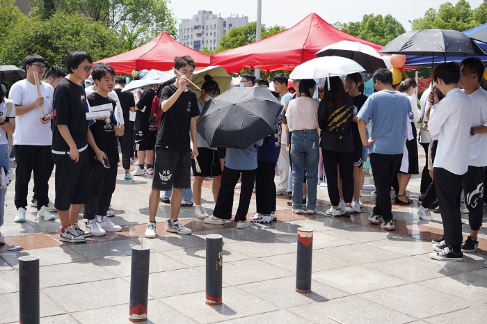在遵守校园疫情防控要求的前提下,活动现场结合端午传统文化,设置投壶、手工五彩绳、糖画等特色体验活动,弘扬传统文化的同时,鼓励学子积极践行环保理念。活动丰富多样,吸引了校内师生驻足。“爱心餐盒不仅健康环保,还能省下每一餐的打包费,减少垃圾产生,避免污染环境。今天丰富的活动也让我学习到了更多传统文化知识。”一名参与活动的学生说道。