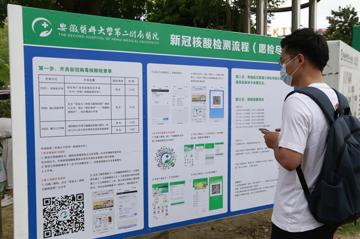 该院核酸检测点高峰期日检测量在4000人以上,在三个窗口24小时不间断工作的情况下,高峰期仍存在人员排长队、扎堆聚集的情况。医院在原检测点旁新增检测屋,增加四个窗口,在核酸检测高峰期适时开放,充分满足高峰期市民核酸检测需求。为方便市民了解核酸检测开单流程、出报告时间、在线查看核酸结果等,医院还在多处显著位置张贴大幅核酸检测流程和自助机开单指示牌,为市民提供便捷高效的核酸检测服务。