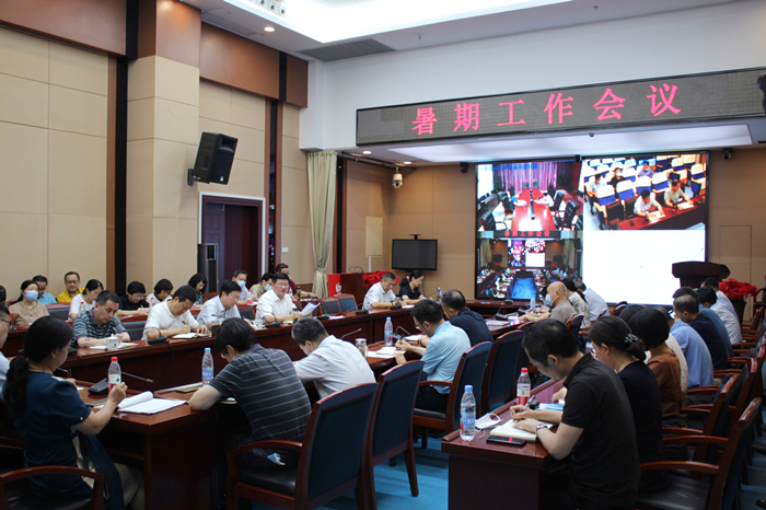 6月28日下午,学校召开暑期工作会议,研究部署2022年暑期重点工作任务,统筹推进常态化疫情防控和事业高质量发展。校党委书记顾家山主持会议并讲话,校党委副书记刘群英,副校长梁朝朝、肖圣龙、吕雄文,校纪委书记、省监委驻我校监察专员黄新美出席会议。