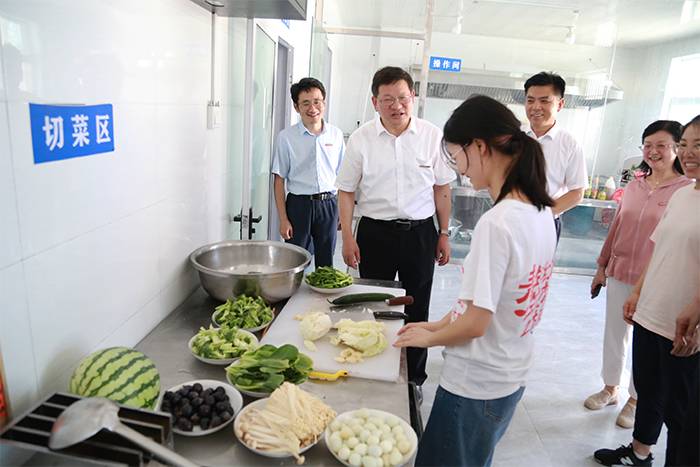 在尤湖村希望小学,顾家山走访了“蒲公英”暑期支教社会实践团队师生的宿舍现场、做饭现场,饶有兴趣地听取了同学们开展社会实践十多天来的学习和实践情况,对当地青少年成长的调研思考,以地为“床”、自学做饭的生活情况,以及活动中的与基层群众打交道的点滴感动、感悟收获。顾家山在不时地插话、交流中说:“同学们的每一句感悟都是教育箴言,每一篇日记都是教育札记。”“教育的现场蕴含着最精彩的教育故事”“生活即教育、社会即学校。大家在学校创造的社会学校场景中自找‘苦’吃,在被需要中体悟到实现人生价值的内涵,在朋辈间相互学习交流中重新认识自我,在备好每一节课、准备好每一件教具中,体会到知识、行动与创造的关系,在理论转化为实践中实现新的创造,这都将成为同学们成人成才成功的自信之基。”