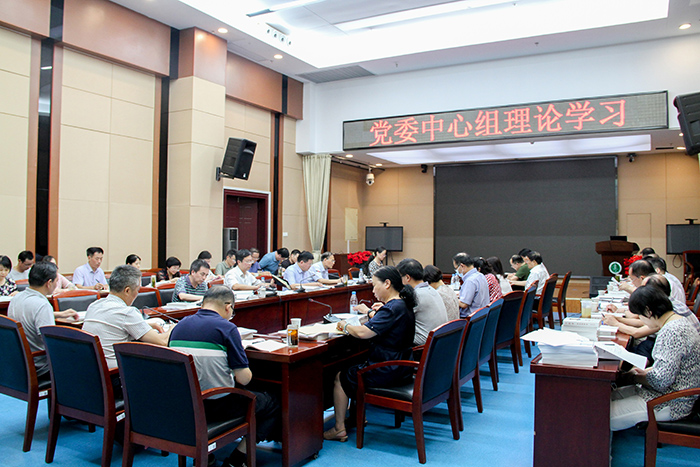 8月4日下午,校党委中心组在知行楼一楼会议室召开理论学习会,校党委中心组组长、校党委书记顾家山主持会议并在会前通报了本科生、研究生就业情况,全体在校校领导刘群英、余永强、肖圣龙、吕雄文、黄新美参加学习。