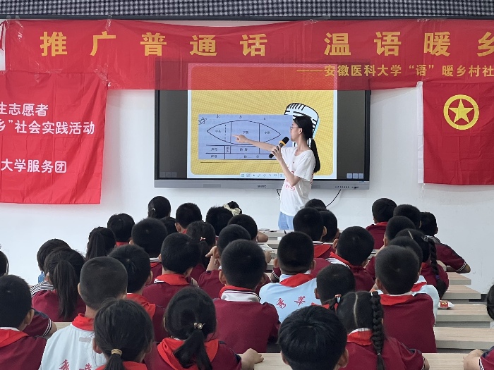近日,第二临床医学院“语”暖乡村暑期社会实践团赴淮南市凤台县顾桥镇开展为期七天的暑期社会实践活动,进一步加大民族地区、农村地区国家通用语言文字推广力度,服务乡村振兴战略,引导青年学子在志愿服务中推广普通话,在实践活动中受教育、长才干、作贡献。