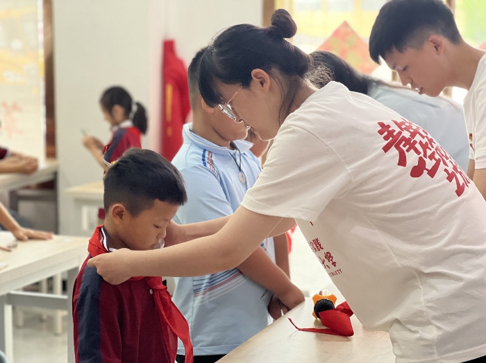 喜迎二十大,童心向未来。在党的二十大即将召开之际,实践团坚定“永远跟党走”理想信念,在乡村小学开展“红领巾心向党,唱红歌共成长”和“喜迎二十大,画笔绘党恩”等活动,在推普过程中将红色精神厚植于孩子们心中。