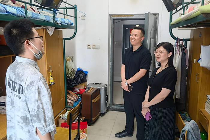 心系学生,关切入寝。“暑期在校生活学习还有什么困难?”“疫情防控不能放松,一定要注意安全”……走访过程中,学院党委书记袁方、副院长孟晓明等领导班子成员深入学生宿舍,详细了解留校学生近期学习工作、生活中遇到的困难,深入了解了同学们在专业学习和职业生涯规划、备考情绪调整等一系列实际问题,叮嘱同学们关于疫情防控、防暑降温、用电和消防安全等注意事项,重点对“一人寝”进行了安全走访并强调了建立安全联络机制的重要性。学院多举措做好留校学生服务工作,为暑期留校学生创造一个安全、稳定、有序、舒适的学习生活环境。