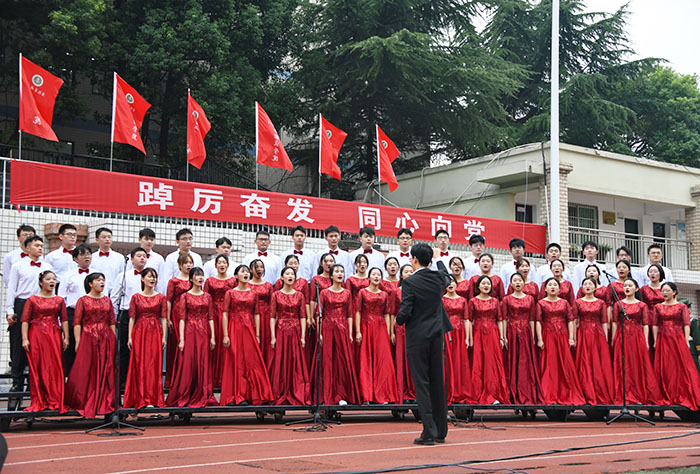校大学生良医合唱团在开学典礼前演唱了《杏林之爱》《强国一代有我在》两首歌曲,为新同学献上祝福。