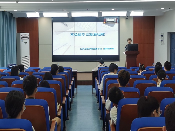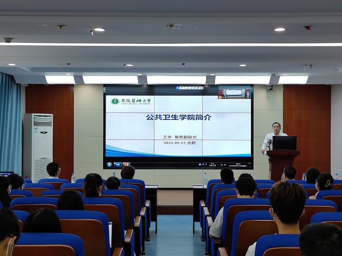 9月13日,公共卫生学院2022级新生见面会在我校力行楼1420会议室举行。该院党委书记潘莉莉教授为2022级研究生新生上入学教育第一课,常务副院长王华教授作专题报告。院党委副书记何婷婷主持会议,院领导班子出席会议。