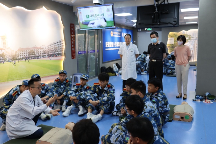 9月20日,副校长吕雄文走访实验教学中心,实地检查2022级本科新生“红十字救护员”培训情况。