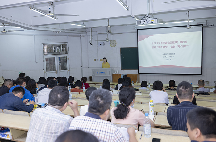 9月21日下午,人文医学学院全体党员上党课,深入学习《习近平谈治国理政》第四卷。党课由该院党委书记杨秀兰主讲,学院近70名党员教师参加学习。