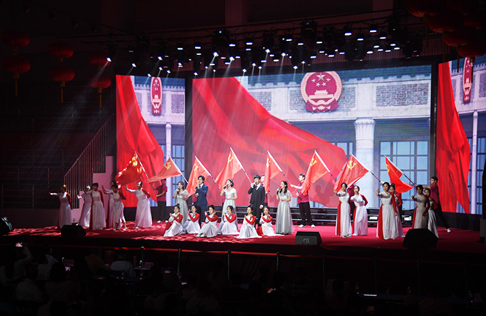 9月28日晚,“喜迎二十大、永远跟党走、奋进新征程”国庆文艺汇演在校大学生活动中心(校本部体育馆)精彩上演。我校师生欢聚于此,满怀诚挚的热忱与激动的心情,以精彩绝伦的舞蹈、发自肺腑的朗诵、气势昂扬的歌声,迎接党的二十大胜利召开。在外地出差的校党委书记顾家山通过短信发来问候并预祝晚会圆满成功。校党委副书记、第一附属医院党委书记谢瑞瑾,校党委常委、副校长余永强、肖圣龙,校党委常委、纪委书记、省监委驻校监察专员黄新美现场观看演出。