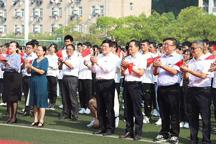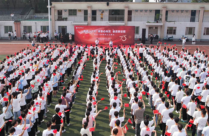 晴空万里,艳阳高照。10月1日上午,我校“喜迎二十大,青春心向党,奋进新征程”——热烈庆祝中华人民共和国成立73周年升旗仪式暨“国旗下的我们”主题教育系列活动在校本部体育场隆重举行。校党委书记顾家山出席活动。学校近千名师生代表齐声高歌,为祖国母亲献上最美好的生日祝福。