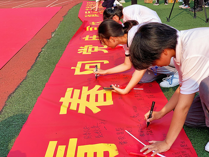 本次活动由校党委学工部、校团委主办,第一临床医学院承办。活动前,第一临床医学院还安排了签名送祝福活动,900余名2022级新生在“青春向党庆国庆,踔厉奋发新征程”的巨大横幅上签名,激励自己青春向党、踔厉奋发,勇做新时代的领跑者,为实现中华民族的伟大复兴贡献青春力量。(校党委学工部 校团委 第一临床医学院)
