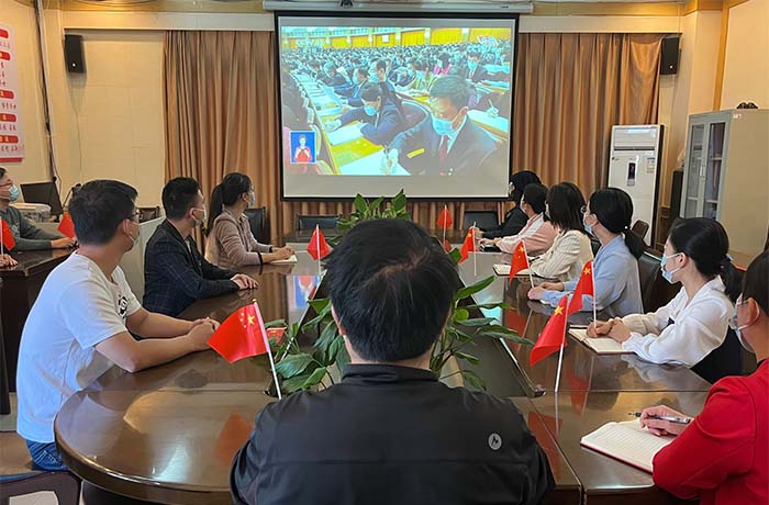 学院领导班子在图书馆第一报告厅集中收看大会直播,院行政人员、全体学生党员、各团总支以及院研究生会、学生会等分别在学院组织的四个分会场集中收看了大会盛况,13个教工党支部分别通过线下研讨、线上会议、个人自学等多种形式收听收看大会直播。