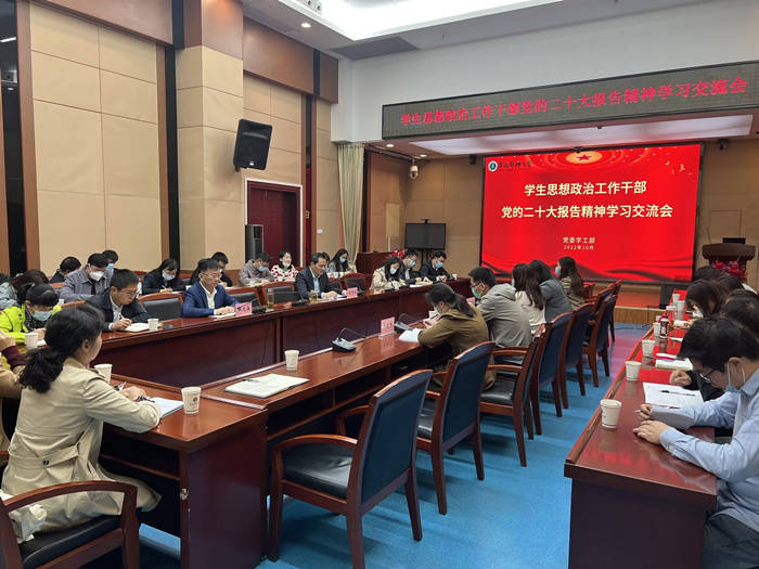 10月20日上午,校党委学工部组织召开学生思想政治工作干部党的二十大精神学习交流会。校党委学工部部长马军成主持会议。