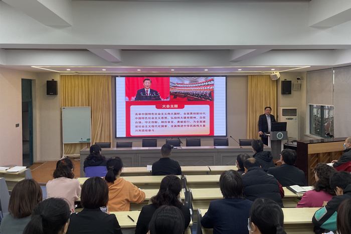附属小学全体教师参加会议,并一致表示将以党的二十大精神为引领,牢记“为党育人、为国育才”的光荣使命,不忘立德树人初心,做群众满意的教育工作者,做无愧于新时代的人民教师。(附属小学)