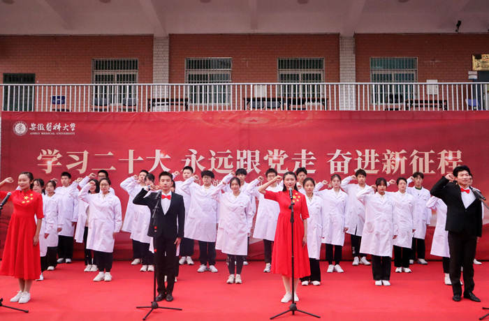 青春心向党,奋进新征程。活动中,第二临床医学院2022级麻醉学吴奕扬等同学表演的诗歌朗诵《青春心向党》,声情并茂地歌颂了伟大中国共产党的光辉历程,铿锵有力地表达了对伟大祖国的崇高敬意,生动诠释了在百年安医的孕育下,新时代安医青年“强国有我,赓续辉煌”的铮铮誓言。2022级临床医学艾力·扎提、康复治疗学郭倩茹等同学表演的《舞动新时代》,以青春之舞、青春之名,舞出满腔清澈挚爱,绽放民族团结深情,以青春最闪耀的模样,与祖国同频,与时代共振。