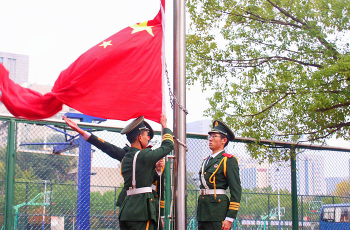 7时许,国旗护卫队着装整齐,迈着矫健的步伐,护卫着鲜艳的五星红旗入场。伴随着庄严的《义勇军进行曲》,五星红旗冉冉升起。师生们精神饱满,齐行注目礼,展现对祖国的无限热爱。