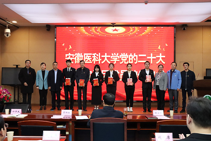 会上还为宣讲团成员颁发了聘书,送上学习材料。校马克思主义学院副院长储著源、公共卫生学院儿少卫生与妇幼保健学系博士生导师朱鹏、2020级马克思主义中国化研究专业硕士生张舒、2020级思想政治教育专业硕士生孙婉霓分别代表马克思主义学院骨干教师宣讲团、“师说·我说”党史学习教育微党课金课获奖者、马克思主义学院研究生思政宣讲团和校思政宣讲团发言。他们一致表示,将在全面把握党的二十大精神上下功夫,紧紧围绕讲深、讲透、讲全、讲准、讲活党的二十大精神这一中心任务,切实加强研究阐释,精心做好宣讲支持和服务,坚持高标准、有特色、务实效地完成在全校广泛宣讲党的二十大精神的政治任务。