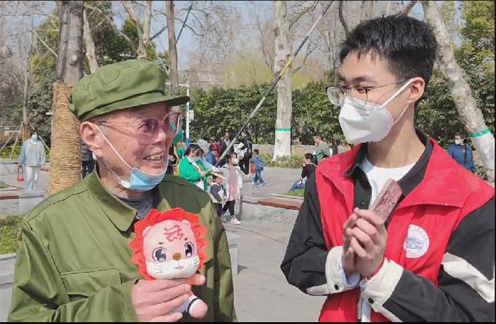分享雷锋故事,颂扬“钉子精神”。该院志愿服务队成员还通过采访街头路人,了解市民对雷锋精神及其事迹的学习体会。采访中,“学习雷锋好榜样,忠于革命忠于党”等一句句耳熟能详的歌词从不同岗位、不同年龄的人们口中传唱出来,更加激励学子们要坚定理想信念,为人民服务。志愿者们还遇到了抗美援朝退伍老兵,他赞扬了同学们的志愿服务精神,并希望同学们能够准确把握雷锋精神的时代内涵,把雷锋精神的实质与新时代大学生志愿服务的要求结合起来,做雷锋精神的传承者与践行者。
