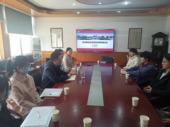 近日,卫生管理学院召开新学期学生思想动态调研座谈会,深入了解学生学习、生活和思想状况,听取相关意见和建议。该院党委副书记胡鹏主持会议,本科生辅导员和部分学生代表参加。