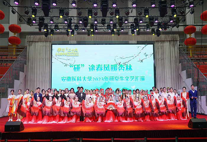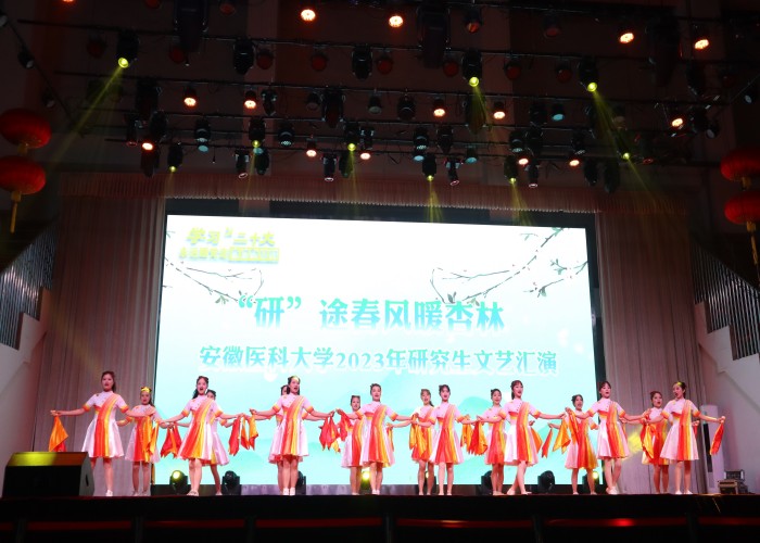 生命科学学院的同学带来的一曲《早安安医》,表达了研究生学子对母校的热爱和对美丽安医人的赞美。临床药理研究所带来的歌曲《游牧时光》婉转动听、旋律悠扬,唱出牧民的自由豪迈。精神卫生与心理科学学院、基础医学院分别带来《华服霓裳》与《纸扇中国》,用不同时代的华服与典雅的舞姿,展示了博大精深的中华传统文化。公共卫生学院的音舞快板《初心不改心向党·踔厉奋发铸辉煌》创意十足、感染全场,歌颂了中华儿女在党的领导下所取得的瞩目成就。马克思主义学院带来的小品《千纸鹤的祝福》风趣幽默地刻画出医术专、行得正、走得远的医生形象。
