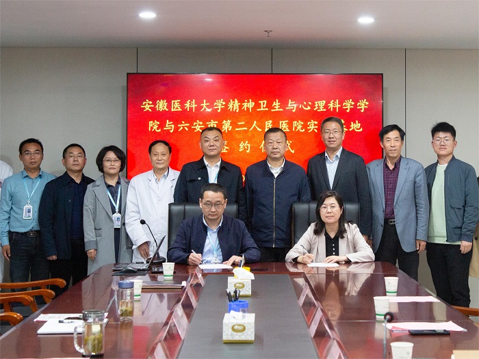 会上,精神卫生与心理科学学院与六安市第二人民医院现场签署了教学实践基地协议。