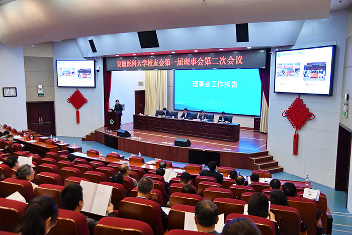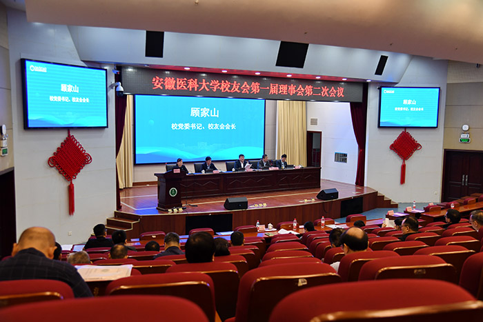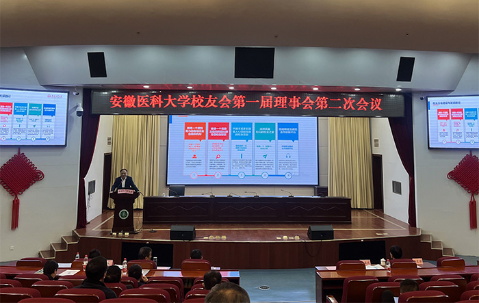 顾家山代表学校向各位理事和长期以来支持学校事业发展的校友们表示了衷心感谢,并从人才培养、学科建设、科学研究、社会服务、开放合作等方面,对学校的发展近况和新医科中心(新校区)的建设情况作了介绍。他表示,校友是母校永不褪色、最靓丽的名片,校友资源是母校高质量发展的不竭动力,学校事业的发展源自于广大师生的不懈奋斗和海内外校友的无私助力,是全体安医人心血、智慧和汗水的结晶。学校正处在第一个百年收官向第二个百年开启的历史交汇期,希望广大校友能够在学校高端人才引进、重大项目申报、前沿平台打造、优质资源汇聚等方面继续主动牵线搭桥,为加快建成国内一流高水平医科大学贡献更多的智慧和力量。