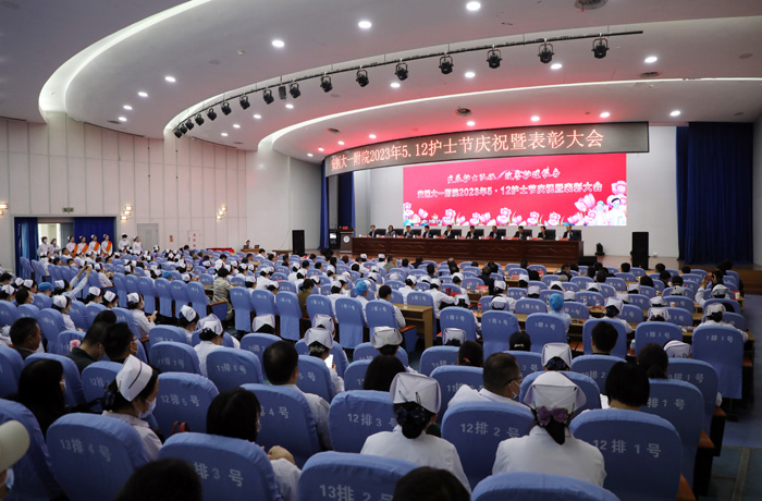 该院全体在院领导,党总支及各职能处室负责人、临床科室主任、护士长及护士代表等参加大会。(第一附属医院 文/胡兴 图/张薇)