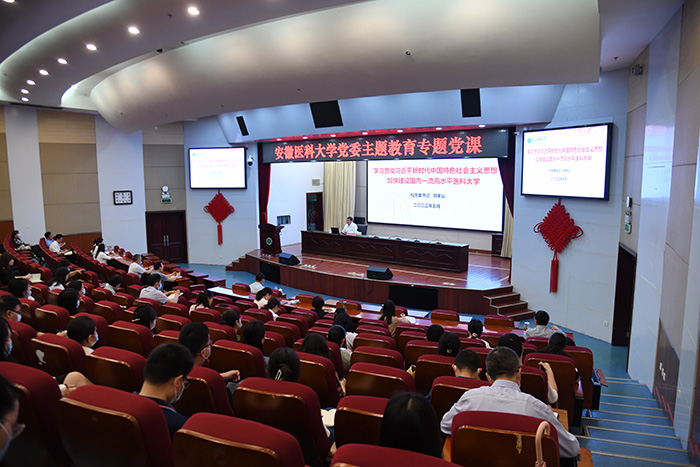 5月19日下午,校党委书记顾家山以《学习贯彻习近平新时代中国特色社会主义思想,加快建设国内一流高水平医科大学》为题,在图书馆第一学术报告厅为师生党员讲授主题教育专题党课。