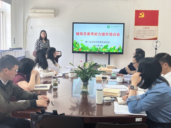 5月25日下午,第一临床医学院举行辅导员素质能力提升培训会。该院学生党总支副书记沈慧主持会议,总支班子和全体学生辅导员参加培训。