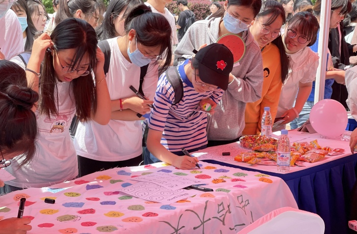 为丰富心理健康教育活动载体,增强学生心理健康意识,提高自我调适能力,校大学生心理健康教育和辅导中心在文化广场开展心理主题嘉年华活动,500余名学生现场参与。“共植希望,园艺健心”让学生从绿植中汲取生机和力量,缤纷串珠、“心灵手巧”戳戳绣,使学生在手工制作中体验快乐和成就;“你好,陌生人”以交换明信片的方式帮助学生互相交流心事,增进友谊;“踢走忧愁”“旋转呼啦圈”等小游戏带领学生感受身体与大脑的互动,了解运动所具有的心理魅力。此外,学院开展的特色活动帮助学子沁润心灵,涵养品德,陶冶情操,有效提高了大学生心理素质和适应能力,丰富了大学生校园文化生活。