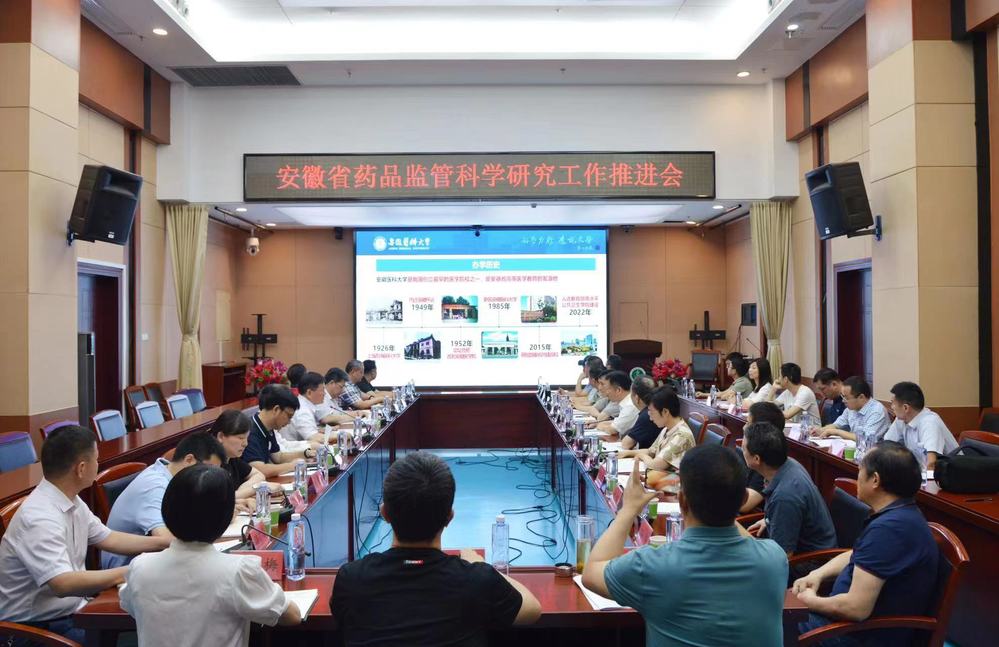 6月21日上午,安徽省药品监管科学研究工作推进会在我校召开。校党委书记顾家山出席会议并致辞,副校长吕雄文作会议报告。安徽中医药大学副校长魏骅,安徽省药品监督管理局党组成员、副局长张磊出席会议。