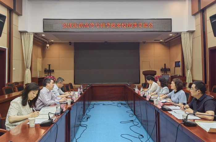 6月20日下午,安庆医药高等专科学校党委书记叶林霞一行来校,就联合培养专升本专业质量建设、师资建设、教学管理、学生管理等内容进行交流座谈。校党委书记顾家山会前会见来访人员,副校长吕雄文同来访人员深入座谈。