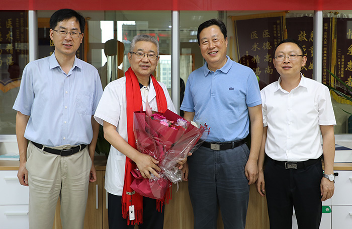 每到一处,校领导与教师代表亲切交谈,仔细询问了他们的工作、身体、生活和家庭情况,对他们多年来为学校教育事业发展所做出的贡献,为学校建设和人才培养付出的辛勤努力表示感谢。校领导希望广大教师和教育工作者深刻认识在教育强国、科技强国、人才强国建设中肩负的光荣使命与重大责任,以人民教育家为榜样,牢固树立“躬耕教坛,强国有我”的志向与抱负,以培养堪当民族复兴大任的时代新人为己任,全员全方位全过程强化师德养成,争做“四有”好老师和“四个引路人”,努力培养更多护佑人民健康的“大国良医”。