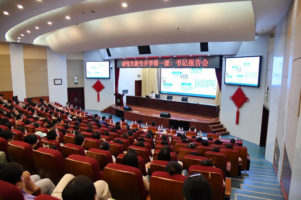 9月7日下午,校党委书记顾家山在图书馆第一报告厅为研究生新生讲授“开学第一课”。校党委常委、副校长肖圣龙主持报告会。