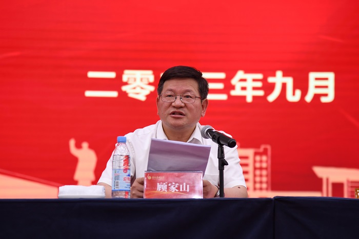 顾家山代表学校向受表彰的十佳教师、优秀教师和优秀教育工作者表示衷心的祝贺,向躬耕在教育教学一线的广大教职医护员工和离退休教师致以节日的问候和崇高的敬意,向全体新入职教职员工表示热烈的欢迎。