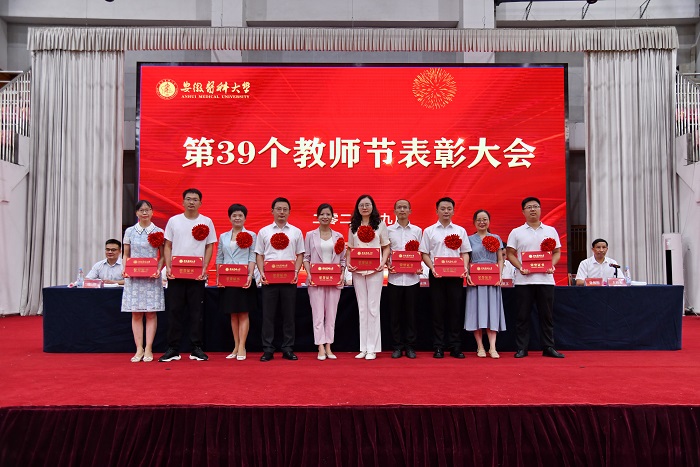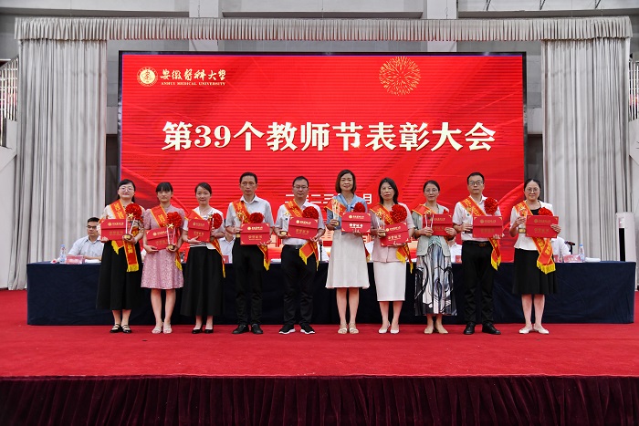 大会授予10位同志“十佳基础教师”荣誉称号,10位同志“十佳临床教师”荣誉称号,87位同志“优秀教师”荣誉称号,52位同志“优秀教育工作者”荣誉称号。