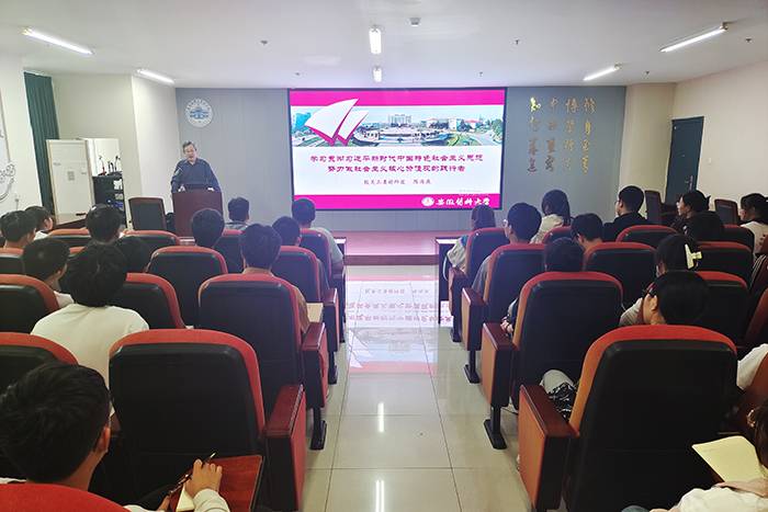 以党的二十大报告和社会主义核心价值观的精神内涵为切入点,陈海燕向同学们阐述了培育和践行社会主义核心价值观的重大意义,并结合自身多年的学习体会和经验,给同学们提出了十点条建议。他表示,青年大学生必须认真学习、深刻领会习近平新时代中国特色社会主义思想,将爱国主义、集体主义、社会主义教育内化于心、外化于行,努力成长为能够担当民族复兴大任的时代新人。要从自己做起、从现在做起、从小事做起,把践行社会主义核心价值观落到实处。
