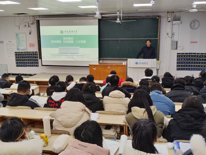 12月21日晚,副校长徐朝阳在锡祺楼14101教室为本科生讲授了题为《加快建设教育强国、科技强国、人才强国》的“形势与政策”课。
