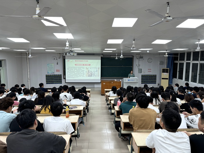 药学院2023级药学专业150余名学生聆听本次授课。(纪委办公室 马克思主义学院)