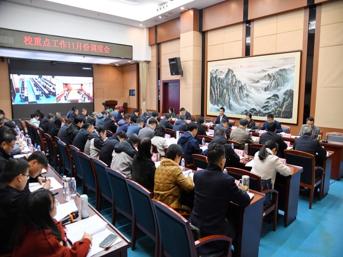 11月27日上午,学校召开校重点工作调度会。会议听取10月调度事项办理进展,现场调度2项重点工作,书面调度8项重点工作,通报6项学校重要指标数据。校党委书记王琦主持会议并讲话,校领导、党委常委出席会议。