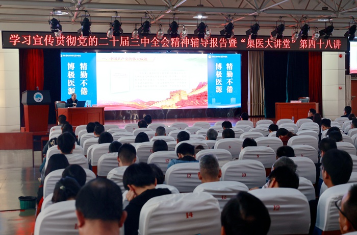 11月5日下午,附属巢湖医院邀请党的二十大代表、安徽师范大学马克思主义学院教授、博士生导师路丙辉,作学习宣传贯彻党的二十届三中全会精神专题辅导报告,进一步引领医院师生医护员工把思想和行动统一到全会精神上来,把智慧和力量凝聚到落实全会确定的目标任务上来,以实际行动加快推进医院高质量发展。报告会也是医院巢医大讲堂第四十八讲,院党委书记刘颀为路丙辉颁发纪念证书。