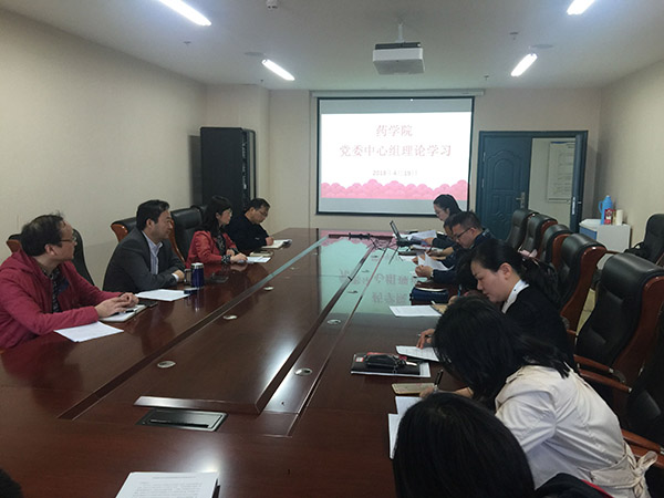 4 月 19 日上午,药学院党委中心组召开学习会。学院党委书记袁方主持会议。药学院院长陈飞虎等党委班子成员、科级以上干部、各党支部书记以及各教研室、实验中心负责同志参加了会议。