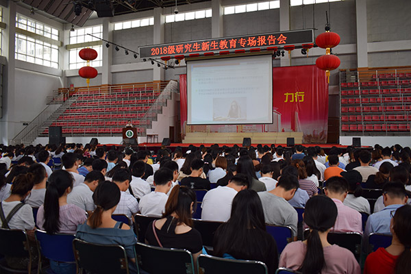 9月14日上午,校党委研工部举行2018级研究生新生教育系列报告会,分别邀请三里庵派出所所长黄华军和我校精神医学中心研究生导师朱春燕为新生作辅导报告。