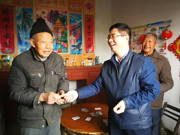 11月8日,机关一总支赴我校扶贫点——霍邱县城关镇泽沟村助力扶贫,机关一总支纪委办党支部、第一联合党支部参加了此项活动。 机关一总支书记张军代表党总支向泽沟村捐赠了扶贫专项资金并向扶贫队员表示慰问,驻村工作队队长吴成义同志介绍了驻村扶贫有关情况。在我校扶贫工作队的引导下,一行人还深入到5户贫困家庭进行了走访慰问。