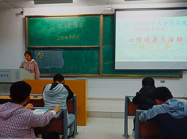 11月19日,药学院心理健康月系列活动之“与心灵相约,与健康同行”主题活动在一号教学楼11403教室和校本部操场举行,本次活动共分为观看尼克胡哲演讲、吐槽大会和“一块五”游戏三个部分,年级辅导员和中药学专业59名新生参加了活动。